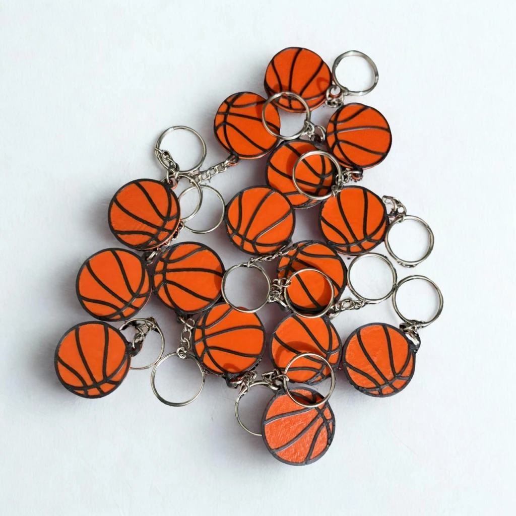 Llaveros de pelota de básquet x50u con medidas de 3x3cm. El pack incluye 50 unidades, todas con cadena reforzada. Un regalo delicado y atractivo para los amantes del básquet.